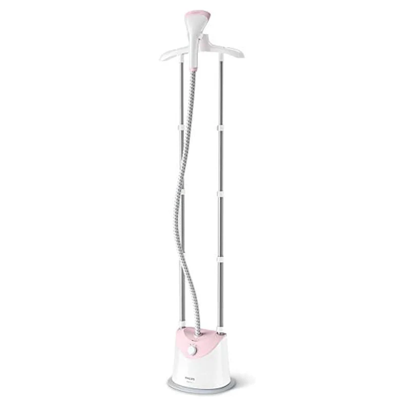 The Philips Easy Touch GC485 is a compact yet powerful garment steamer designed for quick de-wrinkling every day. It offers 35g/min of continuous steam and has two steam settings for different types of fabric.