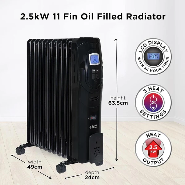 The Russell Hobbs RHOFR5003B is a powerful and efficient oil-filled radiator designed to provide consistent heating. Its sleek design and advanced features make it ideal for warming up any room in your home.